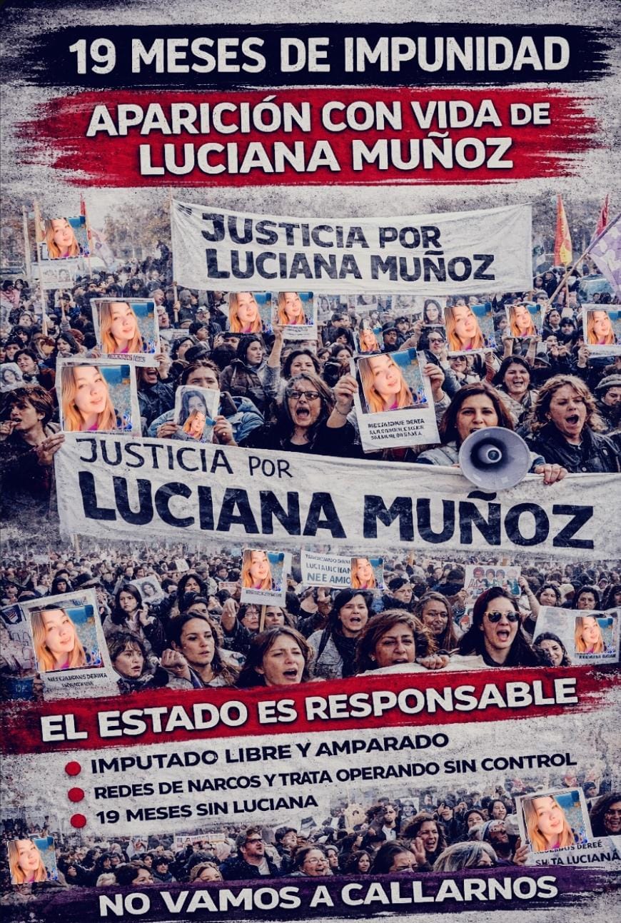 Desde la Asamblea Permanente por la Aparición con Vida de Luciana Muñoz denunciaron “la impunidad que rodea su caso y la responsabilidad política e institucional del Estado en la falta de respuestas”.Luciana fue vista por última vez el 13 de julio de 2024 en la ciudad de Neuquén. Desde entonces, no hay certezas sobre su
