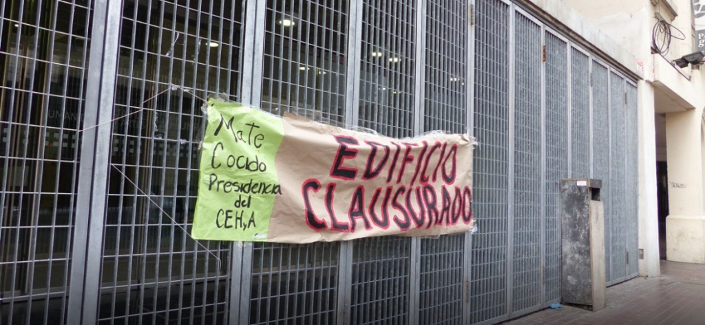 La decisión fue tomada en una asamblea interclaustro realizada este martes 10 de noviembre, para impedir que se sustancie el concurso de la materia de Historia convocado de forma ilegítima. Dicho concurso fue llamado un año antes de lo debido en contravención con el estatuto de la universidad.Transcribimos el comunicadode la Asamblea Interclaustro Facultad de
