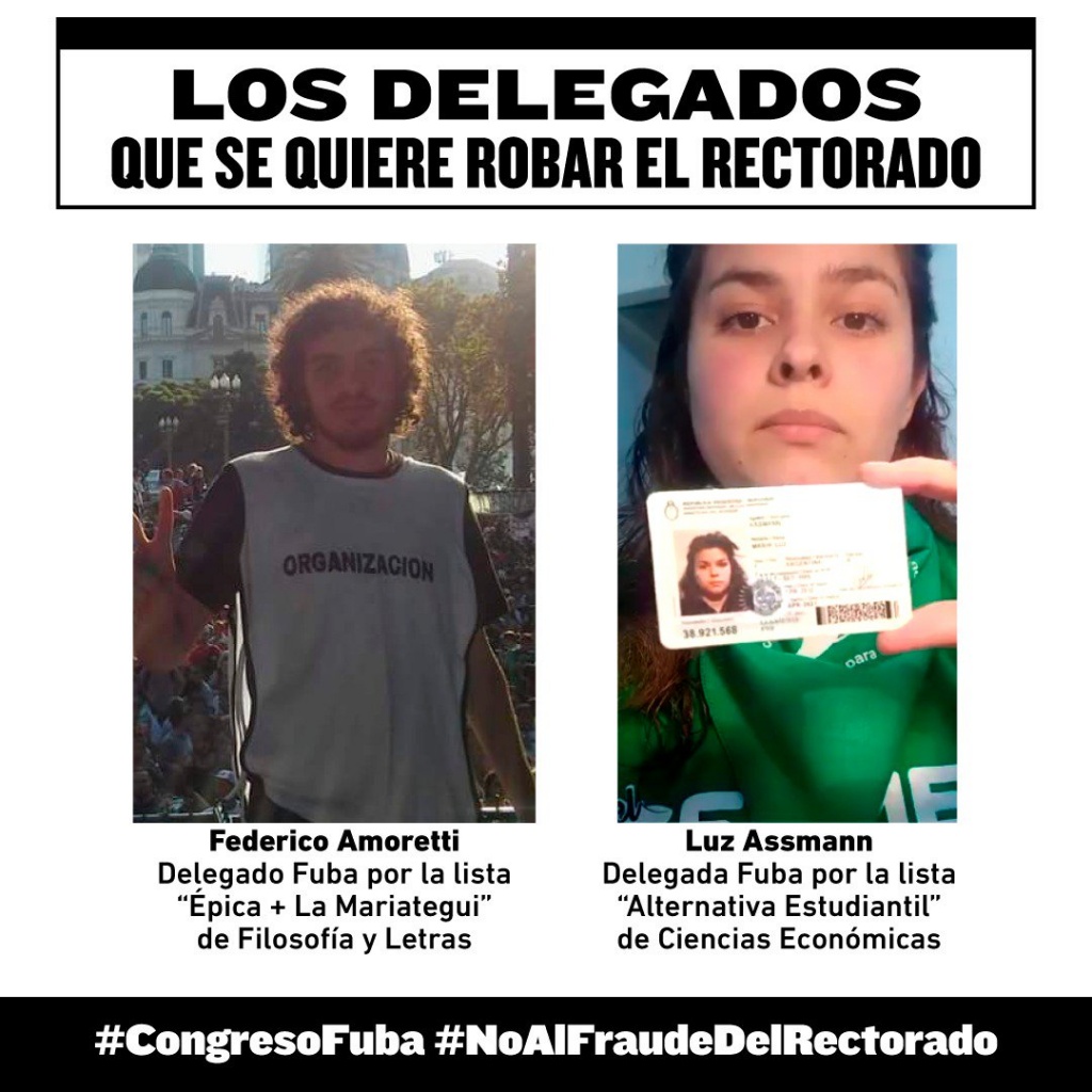 El presidente de la Federación Universitaria de Buenos Aires (FUBA), Julián Asiner, denunció que “el rectorado de la UBA y la pata estudiantil de Cambiemos, Nuevo Espacio/Franja Morada, están organizando un golpe para quedarse con la principal federación estudiantil del país. Cuando Macri acordó con el FMI un ajuste que golpeará aún más a la