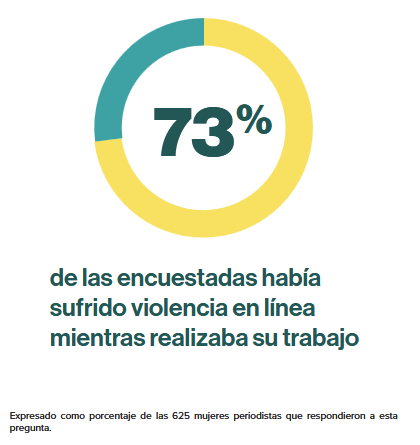 - En el caso de las periodistas, según un informe de la UNESCO y el Centro Internacional para Periodistas (ICFJ), como consecuencia del alto porcentaje de VGFT (73 %), el 20 % afirmó que había dejado de interactuar en línea, el 38 % optó por mantener un perfil más bajo, el 4% dejó su trabajo y el 2 % optó por abandonar del todo el periodismo.