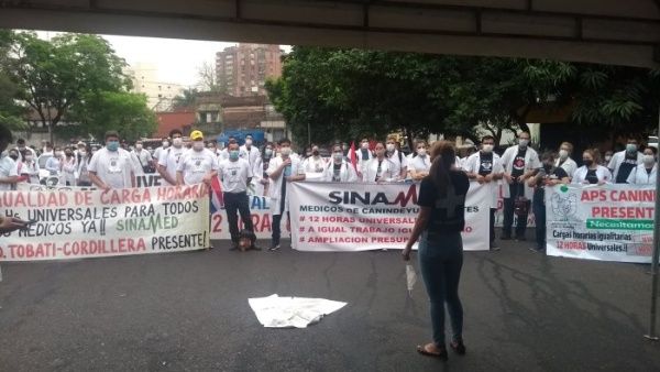 Médicos de las distintas regiones paraguayas comenzaron este martes un paro de 14 días para demandar la reducción de su carga de trabajo y equiparación salarial, dos reclamos vinculados que representa una demanda histórica del gremio.