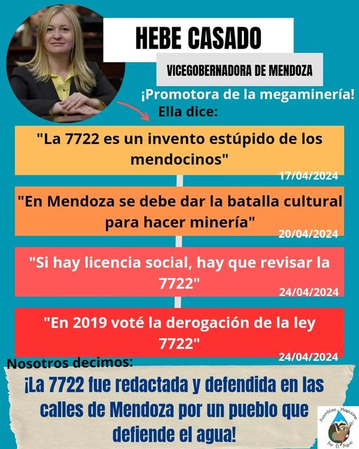 A través de un comunicado, la Asamblea Maipucina por el Agua expresó que, tras la aprobación de esta reforma, el Consejo Minero queda reducido a un cuerpo de segundo orden, con poca ingerencia: “Sabemos que este es el paso fundamental para avanzar con los proyectos de exploración – y posterior explotación- de megaminería metalifera en la provincia, entre ellos el Distrito Minero Malargüe Occidental y Minera San Jorge en Uspallata. Buscan acelerar los tiempos y omitir procedimientos fundamentales estipulados en las leyes ambientales y en la 7722. ¿Vamos a dejar que avancen más? Debemos organizarnos, formarnos, difundir y concientizar. ️La megaminería seca, saquea, contamina, desemplea y corrompe.