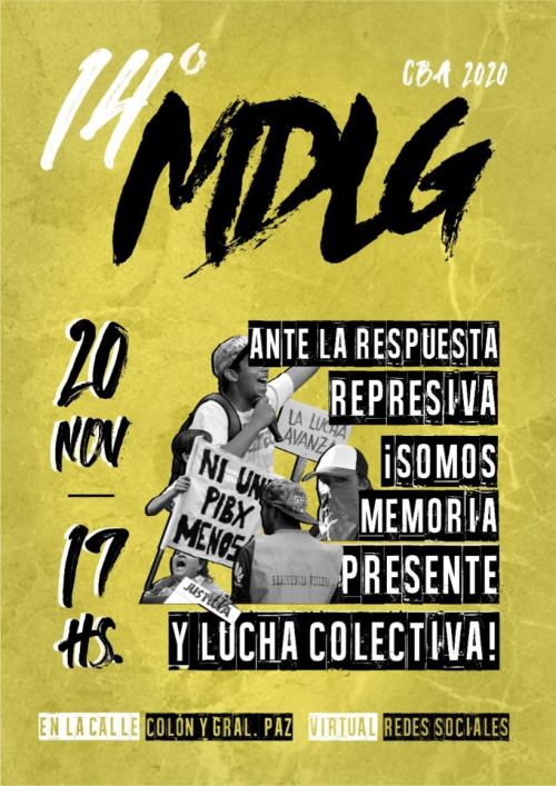 “Es un contexto difícil, sí, pero eso no nos limita: la cuarentena siempre existió para lxs pibxs en los barrios. No hay novedad en esto, venimos denunciándolo hace 14 años, 14 marchas. Ante un Estado que te desaparece, quema los montes, persigue a quienes se organizan, desaloja a quienes no tienen hogar ni servicios básicos y deja de lado a quienes llama ‘esenciales’; y una sociedad argentina que registra más de 31mil muertxs por COVID-19, un femicidio por día, 92 casos de gatillo fácil hasta agosto… sobran cifras y nos faltan personas. Por ellxs y muchxs otrxs más es que seguimos en las calles y en el espacio virtual abonando nuestra lucha”, expresaron los y las organizadores de la Marcha.