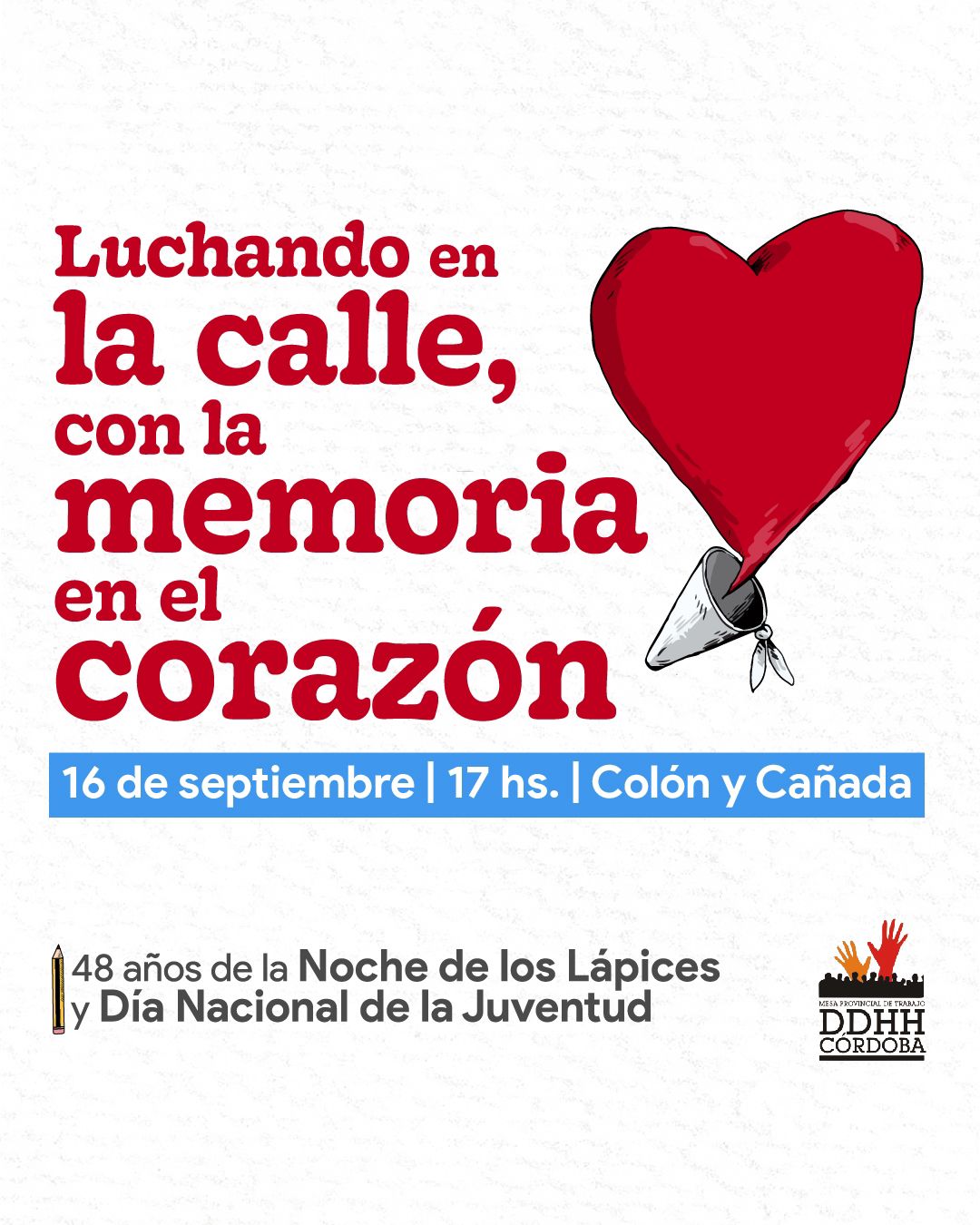 Este lunes 16 de septiembre se realizará una marcha por un nuevo aniversario de “La Noche de los Lápices”. La Unión de Estudiantes Secundarios convoca a las 14 en la Plaza Olazábal, ubicada en la intersección de 7 y 38 de La Plata. También habrá convocatorias en otras provincias.
