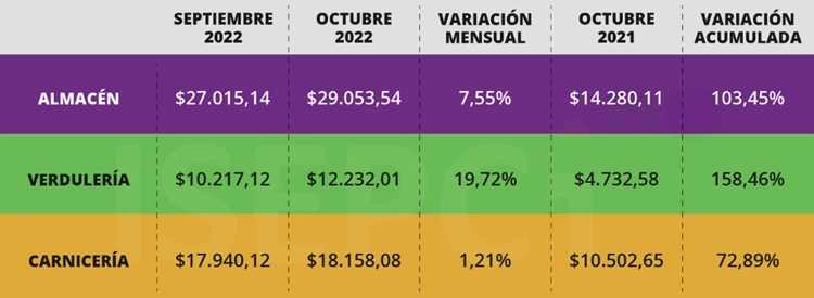 El dato surge del relevamiento de 57 productos de la Canasta Básica de Alimentos (CBA) que realiza mensualmente el Instituto de Investigación Social, Económica y Política Ciudadana (Isepci), desde el Índice Barrial de Precios en 900 comercios de cercanía ubicados en 20 distritos del conurbano bonaerense. El estudio indica además que durante octubre el aumento