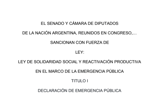 El gobierno nacional envío al Congreso el proyecto de Ley de Solidaridad Social y Reactivación Productiva en el marco de la Emergencia Pública. Varios sectores han manifestado opiniones sobre su contenido. Compartimos algunas de ellas. Red Eco Alternativo