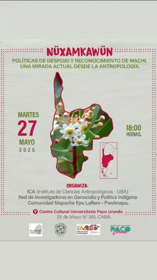 ARGRA (Asociación de Reporteros Gráficos de RA), Tejido de Profesionales Indígenas, Mink´a Comunicaciones y el Programa Radial “Salir x arriba” invitan al conversatorio “Políticas de despojo y reconocimiento de machi. Una mirada actual desde la antropología”, que se realizara el martes próximo a las 18 hs en el Auditorio de la Facultad de Filosofía y