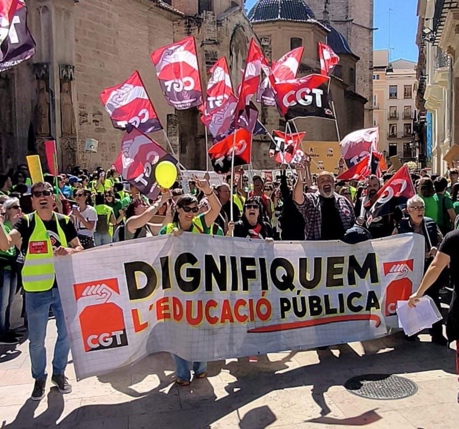 La convocatoria ha sido unitaria, respaldada por casi todos los sindicatos —STEPV-Intersindical, CGT, COS, UGT, CCOO, CSO y los estudiantiles, SEPC y el Sindicato de Estudiantes—, y ha desplegado una gran vertebración territorial, con concentraciones no solo en las capitales de provincia, sino en la mayor parte de las ciudades medianas y pueblos grandes del País Valencià.