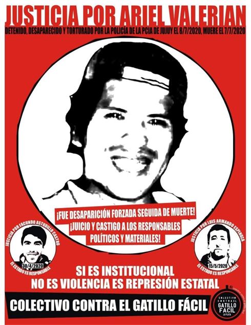 Desde el Colectivo Contra el Gatillo Fácil de La Plata reclaman que la muerte de Ariel Valerian, ocurrida hace cinco meses en Jujuy, sea investigada bajo esa carátula.