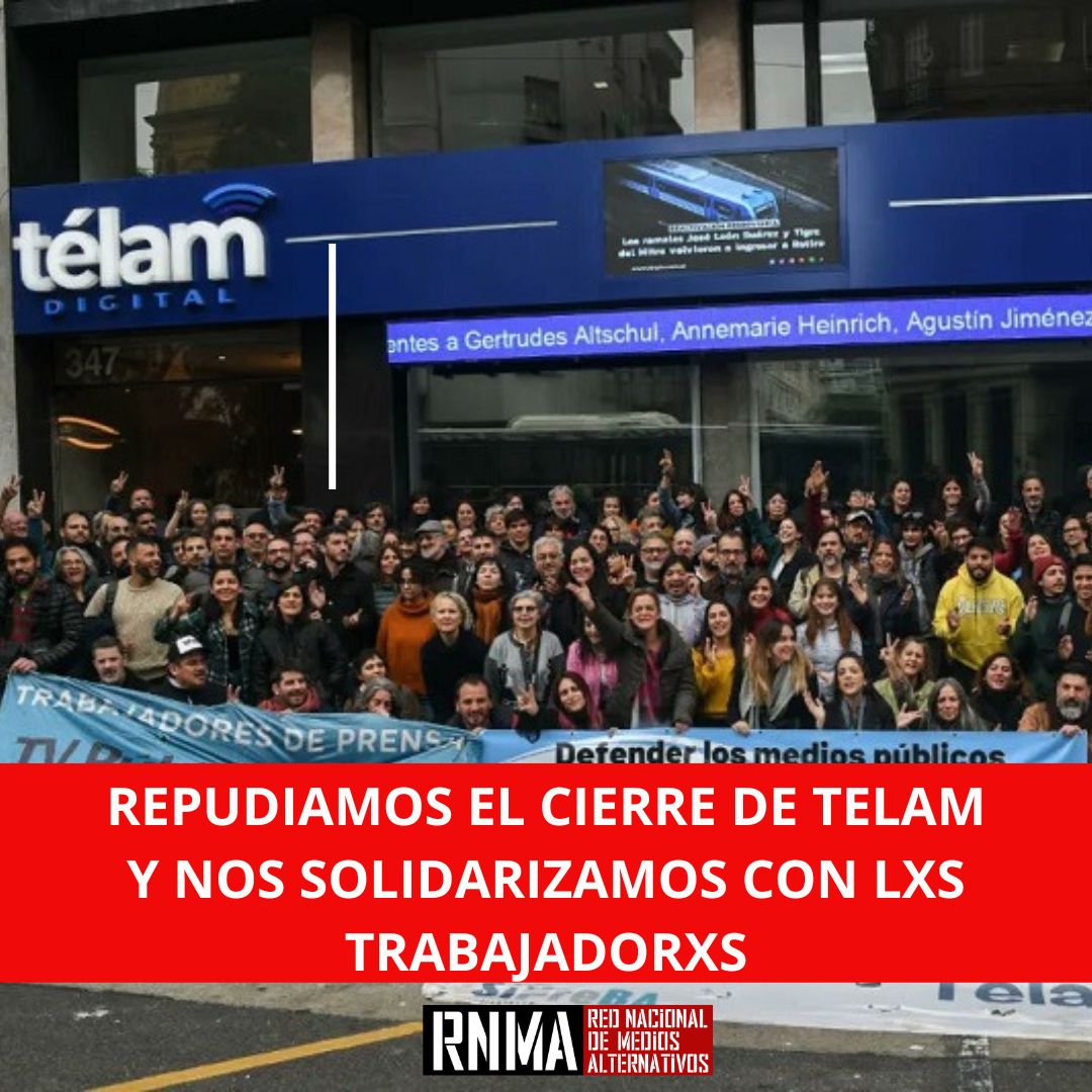 Desde la RNMA repudiamos lo sucedido en horas de la noche, donde el gobierno valló los alrededores del medio Télam, agencia de noticia del Estado, cesanteando a sus trabajadores y trabajadoras y dando de baja la web del medio en cuestión.
