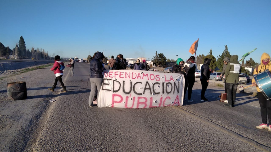 Esta mañana, docentes de la regional este de la Asociación de Trabajadores de la Educación de Chubut (ATECH) realizaron un corte ruta y panfleteada en el ingreso a Trelew con el objetivo de visibilizar la situación que atraviesan.