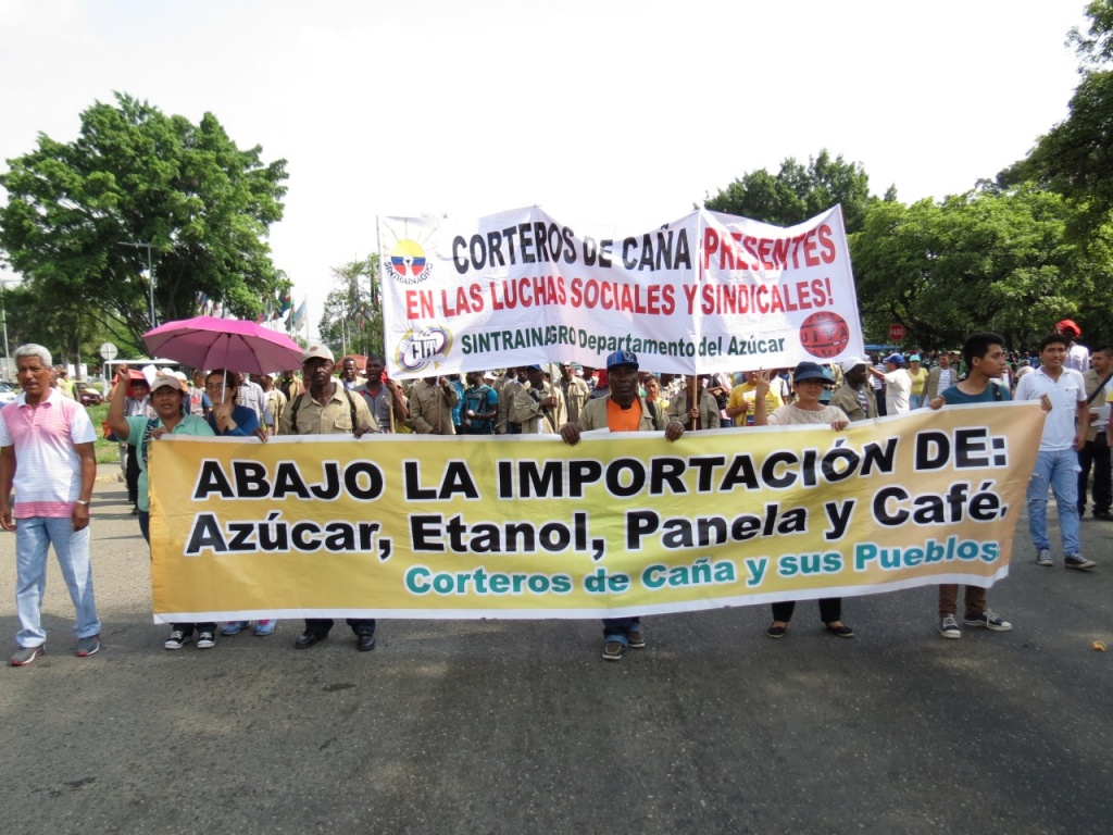 Este 30 de noviembre, la ciudad de Cali fue escenario de una nueva y masiva movilización de los corteros de caña. Exigieron al gobierno de Juan Manuel Santos dejar de impulsar medidas que atacan a la producción nacional, y ponen en riesgo el empleo de miles de trabajadores del sector azucarero y panelero.