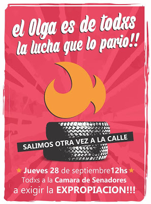 El Centro Social, Cultural y Político Olga Vázquez se concentró este viernes frente a Gobernación para exigir la expropiación definitiva. “El proceso de expropiación solo requiere la firma del Poder Ejecutivo, lo que lo constituye en una decisión política del gobernador Daniel Scioli, ya que hemos cumplido con todas las instancias y etapas que implica.”,