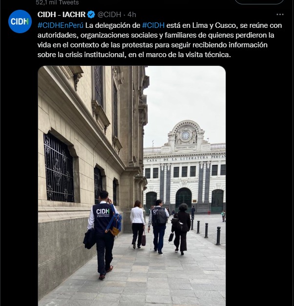 La delegación de la Comisión Interamericana de Derechos Humanos (CIDH) que viajó a Perú, por la crisis política y social que vive el país suramericano, realiza reuniones en Lima y Cusco este miércoles.