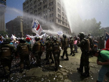 Manifestantes que se reunieron en el sector de Paseo Bulnes, en pleno centro de Santiago, Chile, para protestar por la muerte del comunero mapuche Camilo Catrillanca el pasado miércoles en la comunidad de Temucuicui, se enfrentaron a personal de Fuerzas Especiales de Carabineros frente al Palacio de La Moneda.