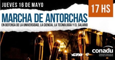 Realizarán un cese de actividades de 48 horas este jueves 16 y viernes 17 de mayo. El epicentro será la Marcha Universitaria de Antorchas en Defensa de la Universidad Pública, la Ciencia y la Tecnología, que federaciones docentes, estudiantes, no docentes y científicos llevarán a cabo el primer día de paro, a las 17, desde…