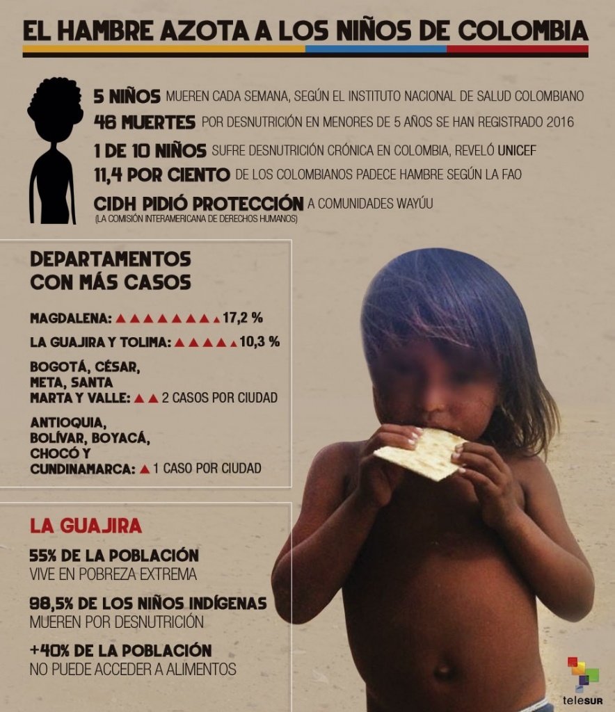 Más de cien niños han muerto en Colombia por desnutrición en lo que va de año, nueve de estos en la última semana, revela el más reciente boletín epidemiológico del Instituto Nacional de Salud (INS).
