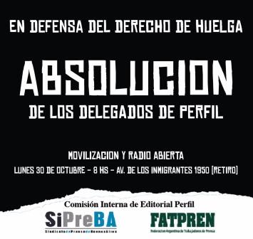 La Justicia ha resuelto elevar a juicio oral la causa abierta en 2013 contra los delegados de prensa de Editorial Perfil, bajo la acusación de violar la libertad de prensa tras haber realizado un extenso paro de actividades contra despidos de trabajadores en la empresa. El proceso está a cargo del juez subrogante Walter Candela.