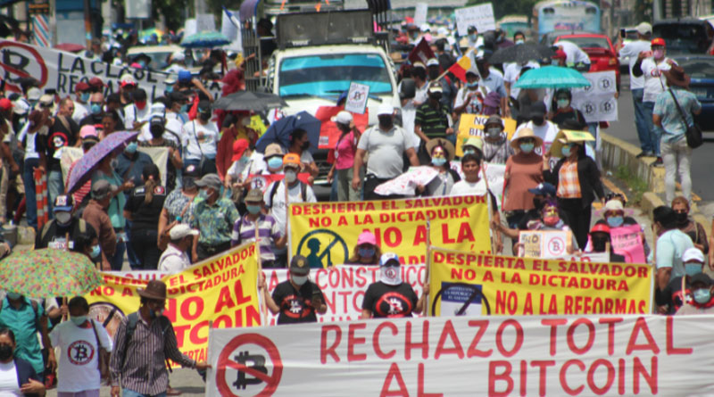 Diversas manifestaciones se realizaron este martes en protesta contra la entrada en vigor de la polémica Ley Bitcóin que entra en vigor este 7 de septiembre y fue anunciada de manera sorpresiva en junio por el Gobierno de Nayib Bukele y aprobada de manera exprés por su Asamblea Legislativa el mismo mes.