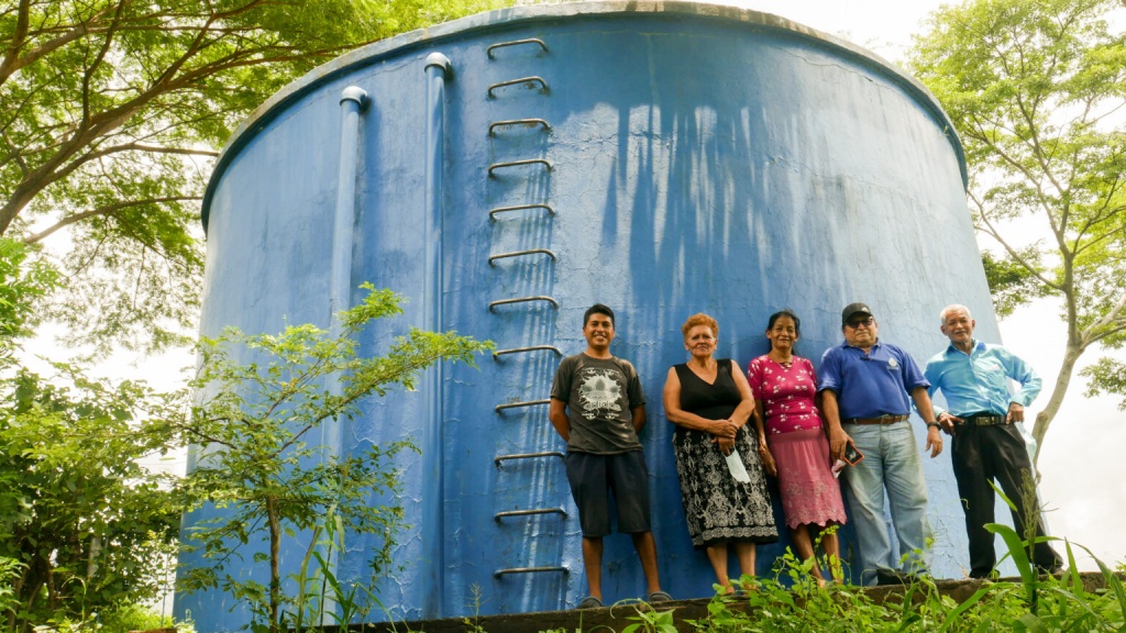 Luego de subir una empinada colina, a través de serpenteantes veredas, se llega a la cima donde se yergue un enorme tanque de agua que abastece a familias campesinas que, ante la falta del servicio, se esforzaron por montar su propio proyecto comunitario en la franja costera del centro de El Salvador.