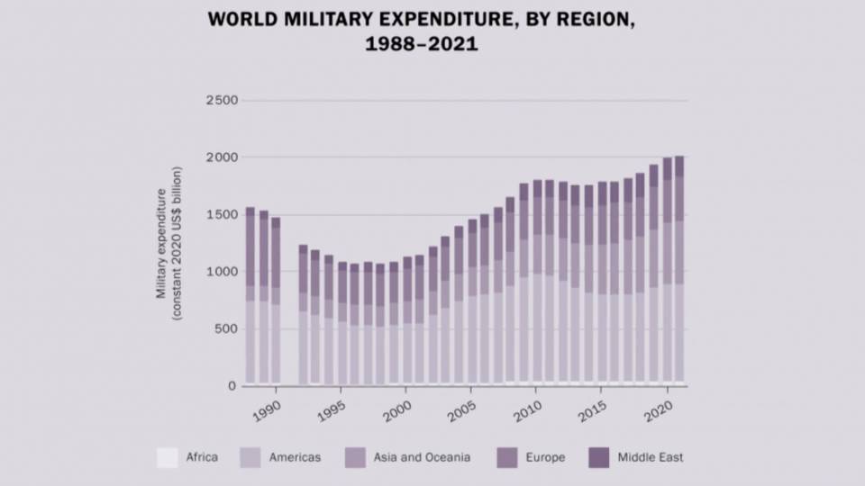 El gasto militar mundial superó por primera vez en la historia los dos billones de dólares en 2021. Así lo revela un nuevo informe del Instituto Internacional de Investigación para la Paz de Estocolmo.