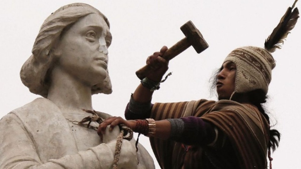 Bolivia: criminalizan al dirigente campesino que mutiló la estatua de Cristóbal Colón