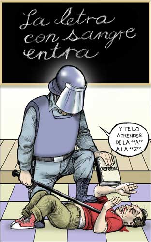 Terminó la primera fase de la evaluación al desempeño docente. El saldo inicial parece más un parte de guerra que una jornada pedagógica: miles de policías federales fueron trasladados a diversos estados del país para garantizar su realización; un maestro resultó muerto, muchos más fueron golpeados y heridos; más de una decena fueron detenidos (cuatro