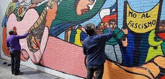 El mural pintado a fines de los años 70, es un símbolo de la solidaridad antifascista de Amsterdam con la lucha del pueblo Chileno.