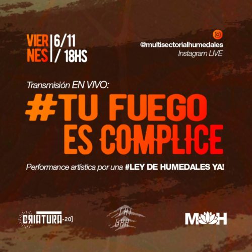 Con casi 900.000 hectáreas afectadas por los incendios, una acción relámpago será realizada en el centro de la ciudad de Rosario este viernes 6 de noviembre, a las 18, para sumarse a los pedidos por la ley de humedales en Argentina. En el marco de la Cumbre Performativa La Criatura 2020 (Buenos Aires), Thigra y la