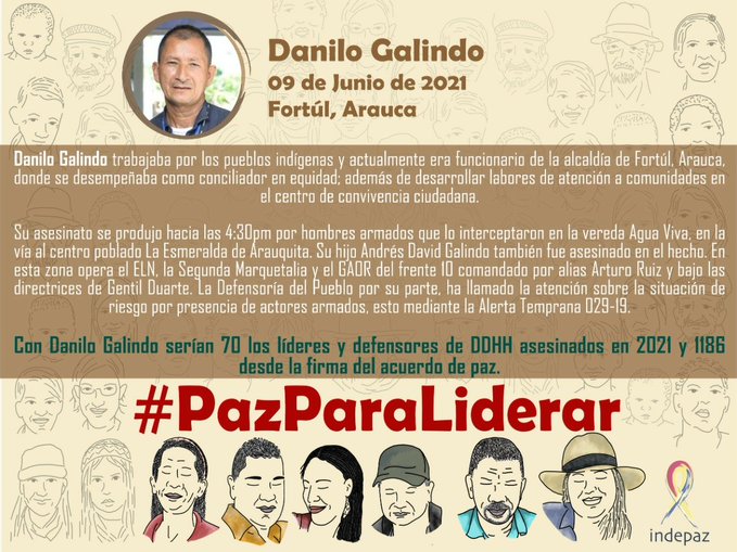 Este miércoles 9 de junio, un grupo de hombres armados asesinaron al trabajador por los derechos de los pueblos indígenas Danilo Galindo junto a su hijo, de solo 23 años de edad, en horas de la tarde.