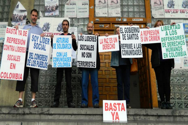 Integrantes del movimiento social colombiano realizaron la mañana de este lunes 12 de junio un plantón frente a la Fiscalía General de la Nación ubicada en Bogotá, a propósito de la campaña “Ser Líder Social No Es Delito”, con la que exigen al gobierno nacional el cese de las agresiones contra el movimiento social, la…