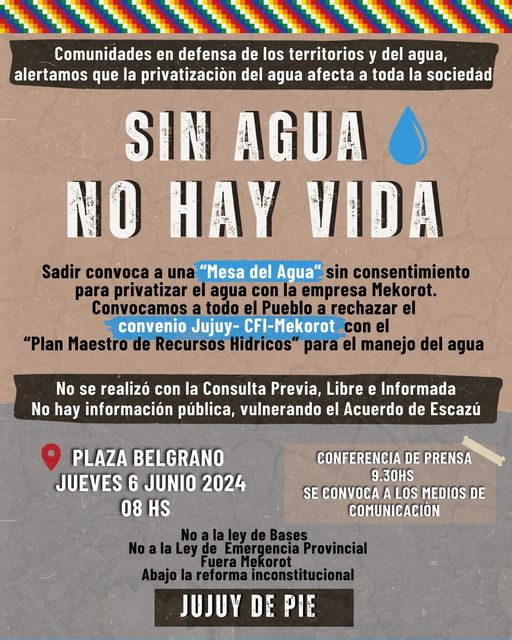 Los pueblos Indígenas de Jujuy invitan a todos los medios de comunicación a una Conferencia de Prensa este jueves en la Plaza Central Manuel Belgrano en la ciudad de S.S. de Jujuy, a las 8:30.
