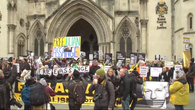 Una multitud reclama, la mañana de este martes en Londres, que la Justicia británica acepte la apelación para que Julian Assange no sea extraditado a EEUU.