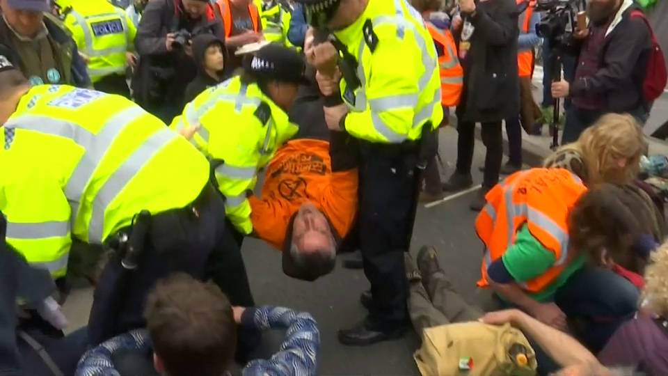 Reino Unido: la policía arresta a más de 200 activistas contra el cambio climático que ocupaban el centro de Londres