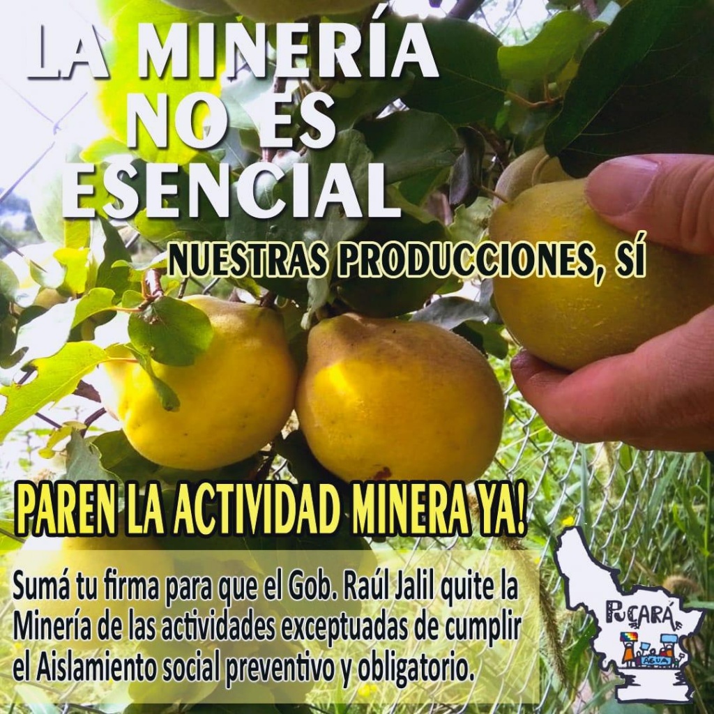 Desde Pucara (Pueblos Catamarqueños en Resistencia y Autodeterminación), junto a organizaciones, asambleas y vecinxs de diversas naciones y territorios de Argentina, se promueve una campaña para exigirles al Presidente Alberto Fernández y a los Gobernadores que deroguen los decretos que declaran a la minería como actividad esencial.