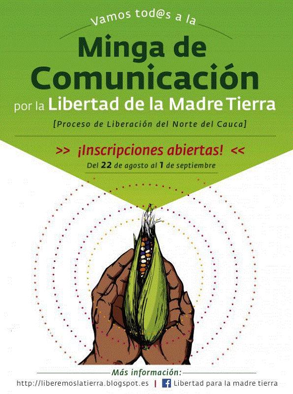 Con el sueño de liberar la Madre Tierra, indígenas del Cauca convocan a la Minga de Comunicación por la Libertad de la Madre Tierra, las inscripciones están abiertas desde el 22 de agosto, hasta el 1 de septiembre, previo envío de correo a liberemoslatierra@gmail.com