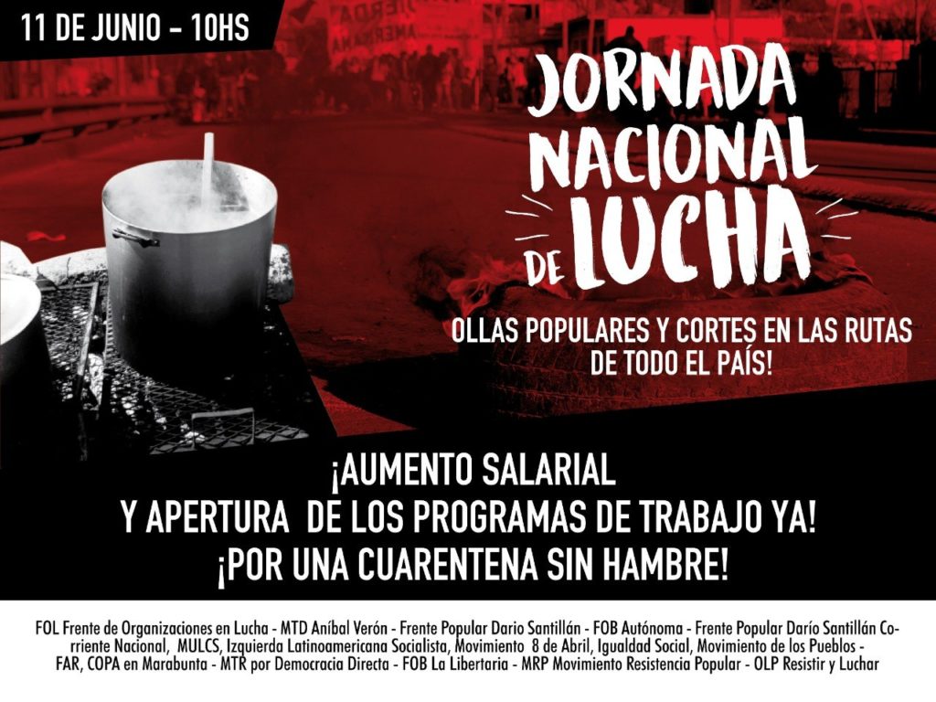 Ante la grave situación que atraviesa la clase trabajadora y en particular el sector precarizado, organizaciones sociales llevarán adelante distintas acciones este jueves 11 de junio, a partir de las 8.