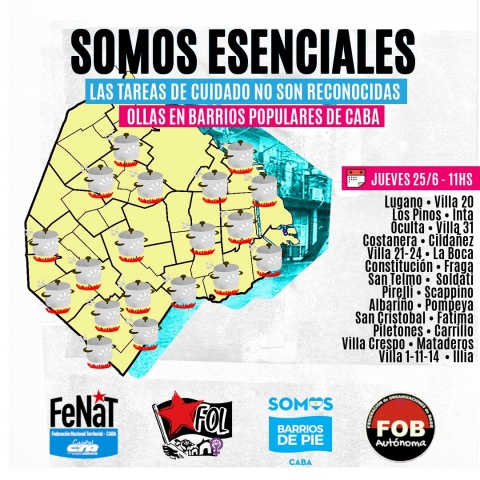La realizarán organizaciones sociales desde este jueves 18 de junio, todos los jueves a partir de las 11, en más de 20 villas y barrios populares porteños para exigir que las tareas que llevan adelante en este contexto de emergencia sanitaria y profunda crisis económica y social son esenciales y deben ser reconocidas.