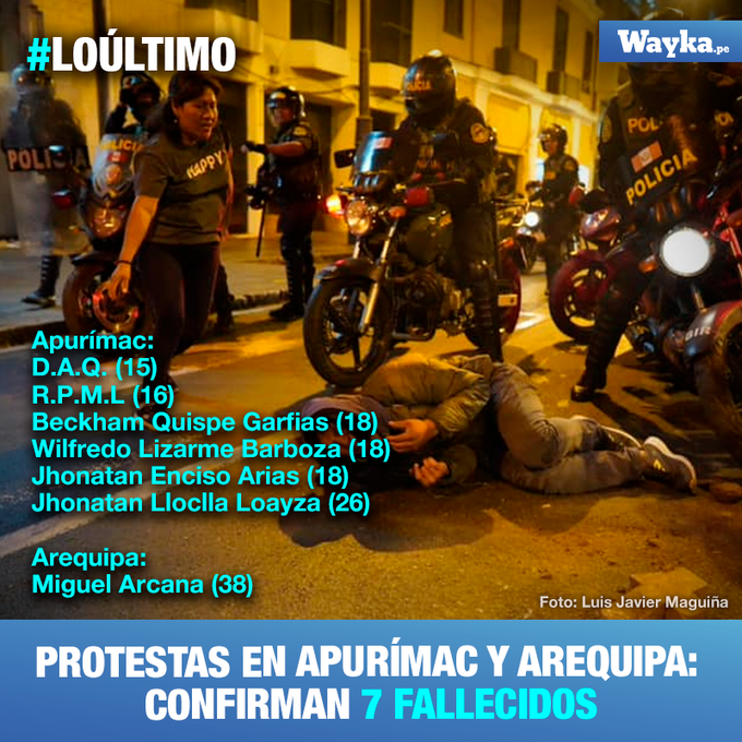 Hasta las 17:30 hs de este lunes se han confirmado, con fuentes oficiales, 7 muertos en las protestas.