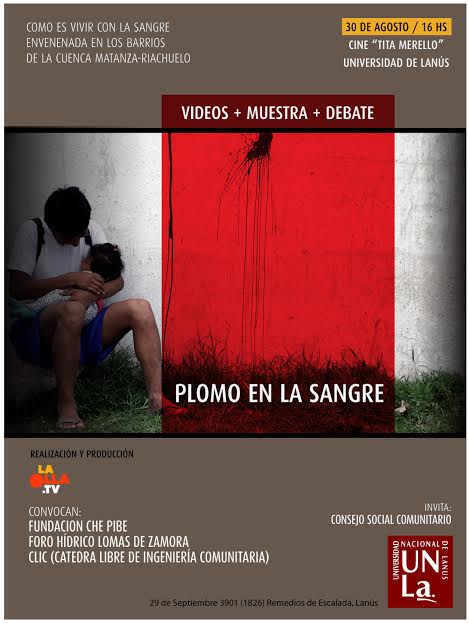El martes 30 de Agosto a las 16 hs se proyectará el documental Plomo en la sangre, en el Cine – Auditorio “Tita Merello” de la Universidad de Lanús. Participarán de la proyección vecinos, organizaciones y especialistas.
