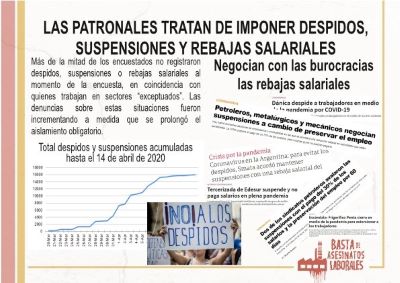 El espacio Basta de Asesinatos Laborales presentó los resultados de un relevamiento efectuado sobre la influencia del COVID19 en la forma de llevar adelante distintas tareas. Consultaron sobre el acatamiento de las medidas de aislamiento por parte de las patronales y los riesgos que corren trabajadores y trabajadoras. Red Eco Alternativo.