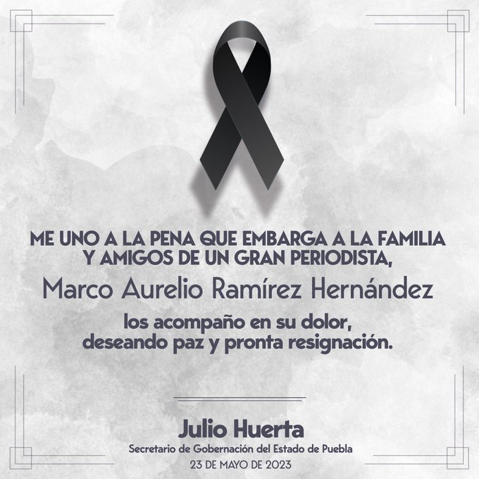 Las autoridades del estado mexicano de Puebla informaron el martes del asesinato a tiros del periodista Marco Aurelio Ramírez Hernández, en la ciudad de Tehuacán.
