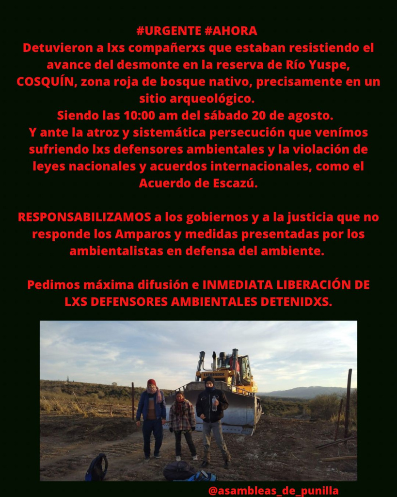 URGENTE Defensores ambientales detenidxos en Cosquín