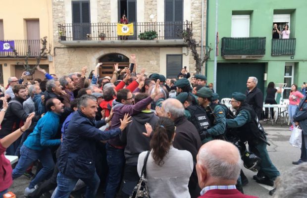 El domingo asistimos a través de las pantallas de televisión a fuerzas antidisturbios golpeando gente en resistencia pasiva y requisando urnas y papeletas. A las 9 en punto de la mañana, los cascos negros de la Guardia Civil avanzaron entre las personas que esperaban la apertura de las mesas con intención de prohibir que se
