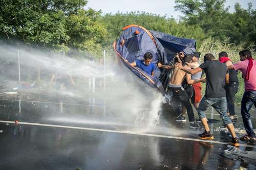 La policía húngara atacó este miércoles con gas lacrimógeno y cañones de agua a cientos de refugiados que intentaban ingresar a su territorio para llegar a naciones más prósperas de Europa. Al menos 20 oficiales y tres niños resultaron heridos en los enfrentamientos, y 367 fueron detenidos por ingresar sin documentos al país, que desde