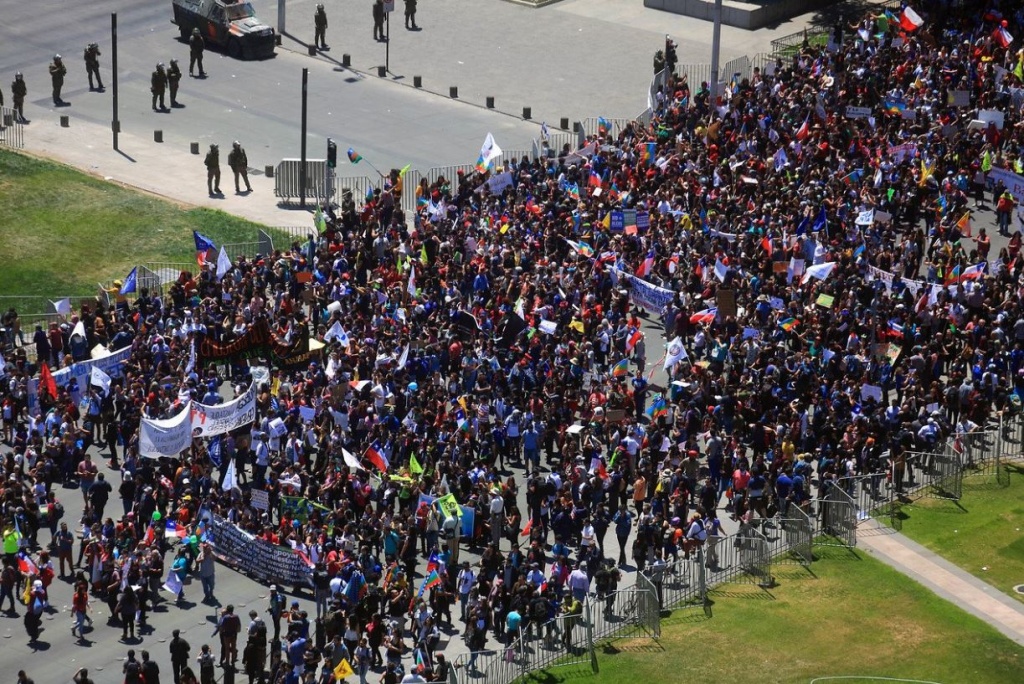 La Plaza Italia nuevamente fue testigo de una manifestación pacífica que reunió a miles de personas de todo Santiago. En este día de Paro General, además, la intención de los participantes fue llegar hacia Palacio La Moneda, algo que se logró incluso en las primeras horas de la protesta.