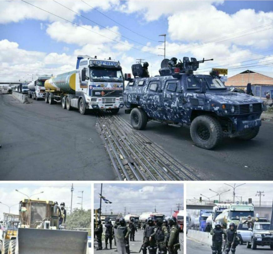 La planta de YPFB (empresa hidrocarburífera boliviana) en Senkata, en el distrito 8 de El Alto, se encontraba bloqueada por manifestantes que piden la renuncia de la autoproclamada presidenta golpista Jeanine Áñez y luchan contra el golpe de Estado.