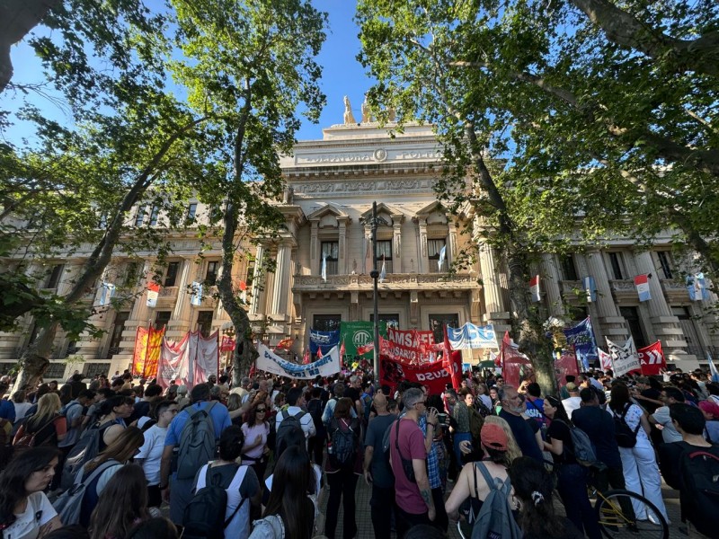 Miles de personas se convocaron este miércoles en la plaza San Martín, frente a la Sede de Gobernación, para exigir la libertad de los militantes gremiales detenidos y el inmediato cese de todo acto de amedrentamiento y persecución a activistas y organizaciones