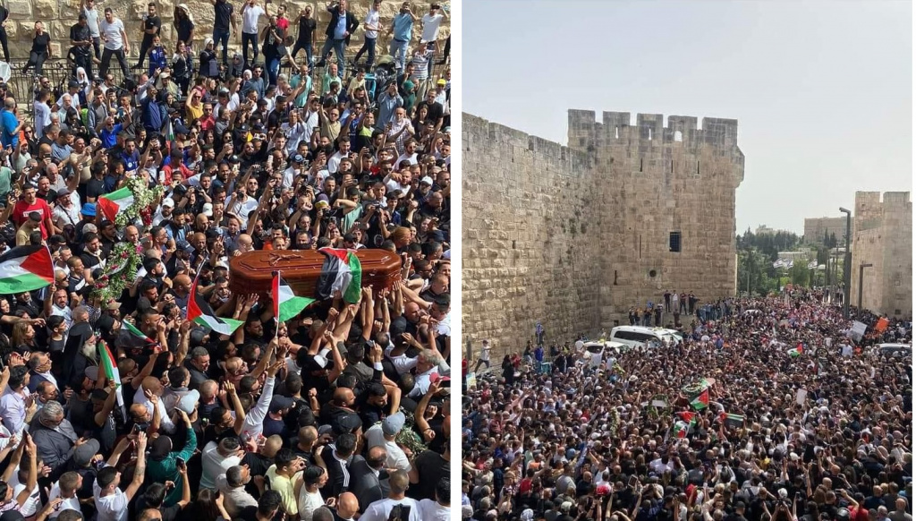 A pesar de las amenazas, miles de palestinos despidieron a la mártir palestina, la periodista Shireen Abu Akle. Los agentes israelíes de ocupación atacaron en varias oportunidades a los asistentes, asaltaron el hospital donde yacía su cuerpo y interrumpieron en múltiples ocasiones el funeral de la víctima.