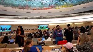 Durante la reunión del Comité de Derechos Humanos de la ONU en Ginebra, Suiza, decenas de activistas presentes en la reunión se levantaron de sus asientos al momento en que la embajadora norteamericana, Michele Taylor, comenzará a hablar, dándole la espalda en forma de protesta.
